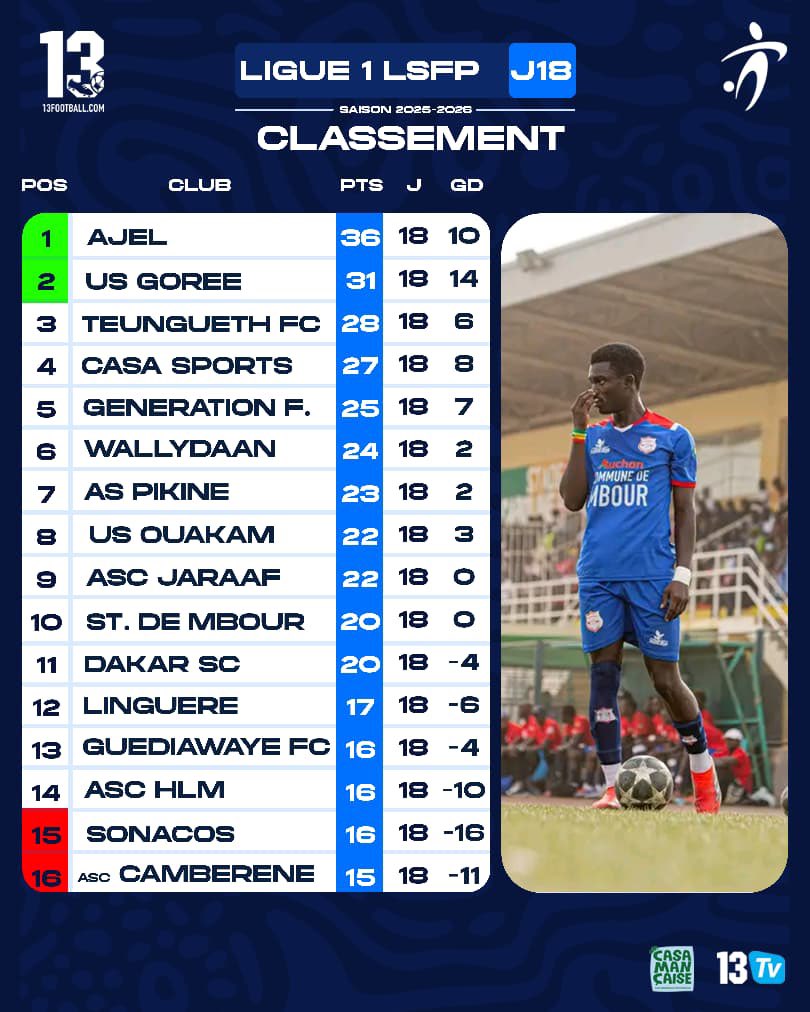 Un succès précieux pour les hommes de Tabane Dieng, qui consolident leur première place et creusent l’écart sur leurs poursuivants. Les coéquipiers d’Ousmane Yeri Diakhaté totalisent désormais 36 points, soit cinq longueurs d’avance sur leur dauphin, l’US Gorée, champion de la phase aller.